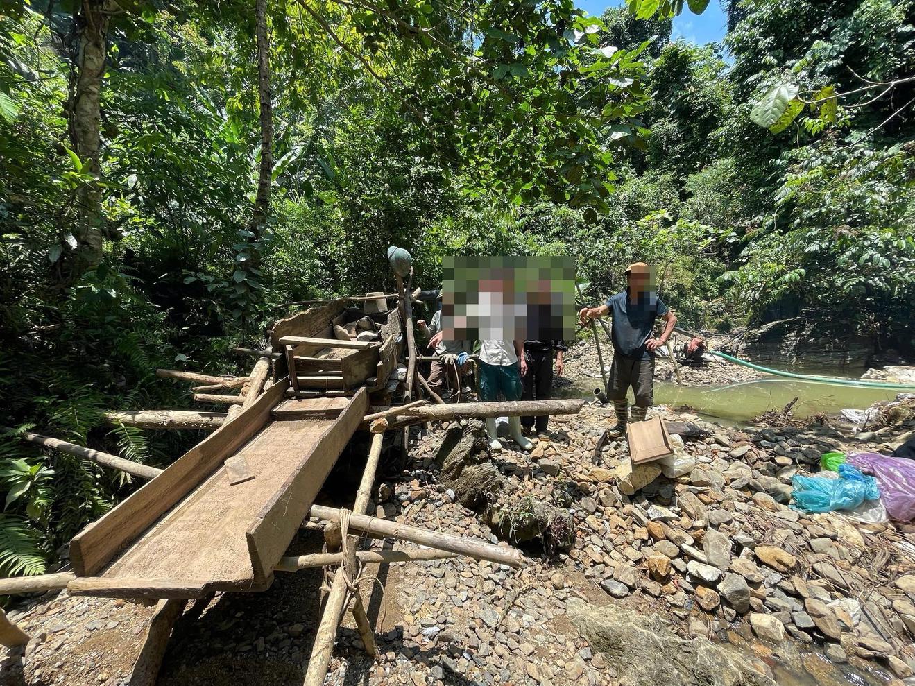 Theo hồ sơ vụ việc, trước đó vào hồi 10h30’ ngày 31/7/2025, Phòng Cảnh sát điều tra tội phạm về tham nhũng, kinh tế, buôn lậu, môi trường đã phối hợp với Công an xã Phú Linh và Công an xã Linh Hồ tiến hành kiểm tra khu vực khe suối thuộc rừng Bản Phó, thôn Nà Pồng, xã Phú Linh, tỉnh Tuyên Quang, phát hiện 5 đối tượng đang trực tiếp hút nước, cát, sỏi từ lòng suối lên hệ thống sàng tuyển để khai thác vàng trái phép.