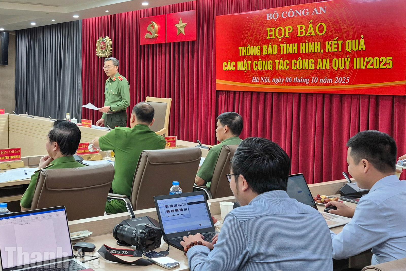 Bộ Công an thực hiện cung cấp thông tin kết quả công tác quý 3/2025 cho báo chí. Ảnh: Thái Minh