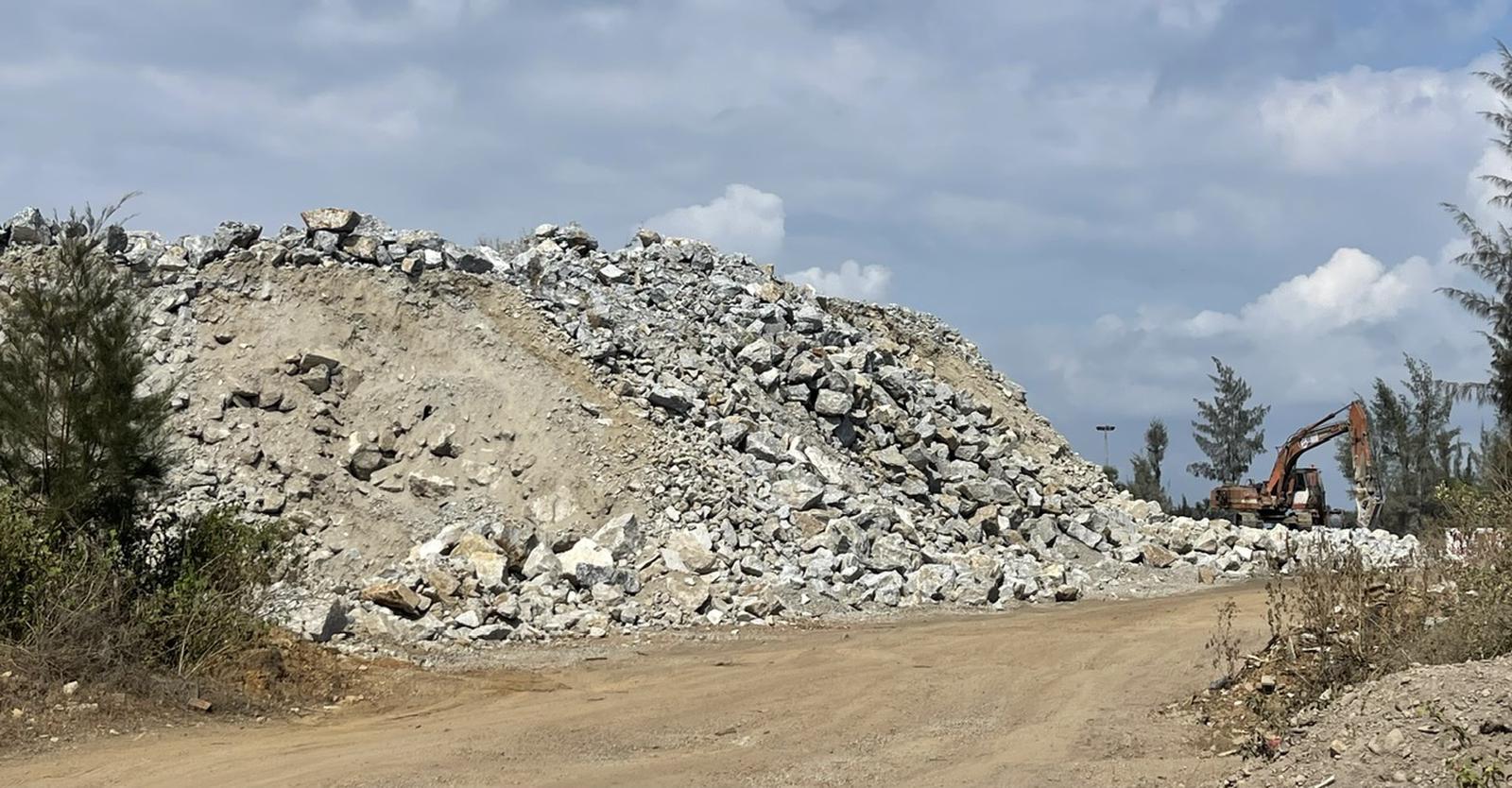 Vì cần sớm giải phóng mặt bằng thi công các công trình trọng điểm tại Dung Quất, một số chủ đầu tư đã hợp đồng với Cty Lý Tuấn và các đơn vị khác vận chuyển 363.177m3 đá dư thừa đến trữ tạm tại bãi tập kết Phi Long, thuộc Khu Du lịch Thiên Đàng (Bình Sơn).