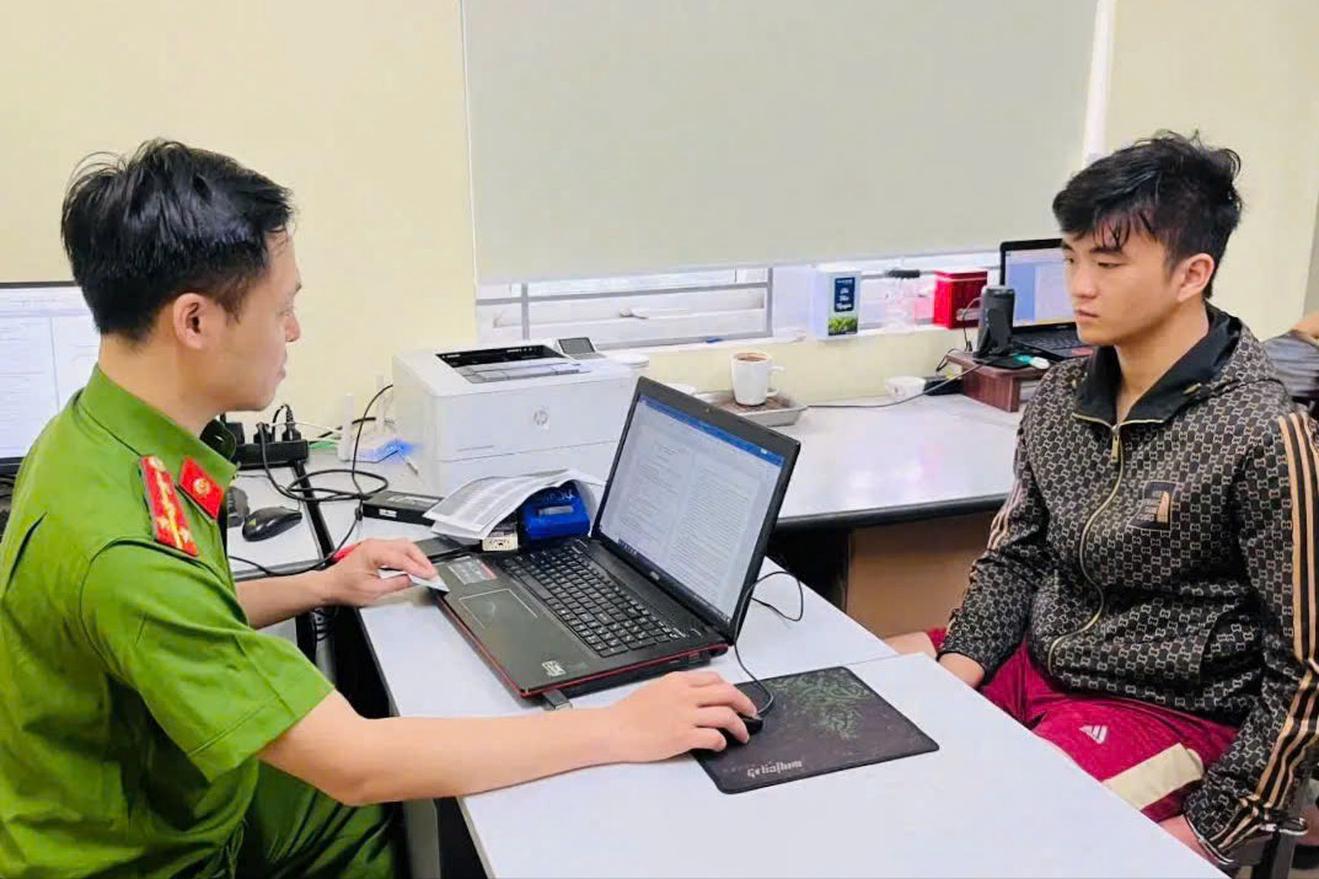 Đối tượng Nguyễn Đức Anh tại cơ quan công an. Ảnh: CA