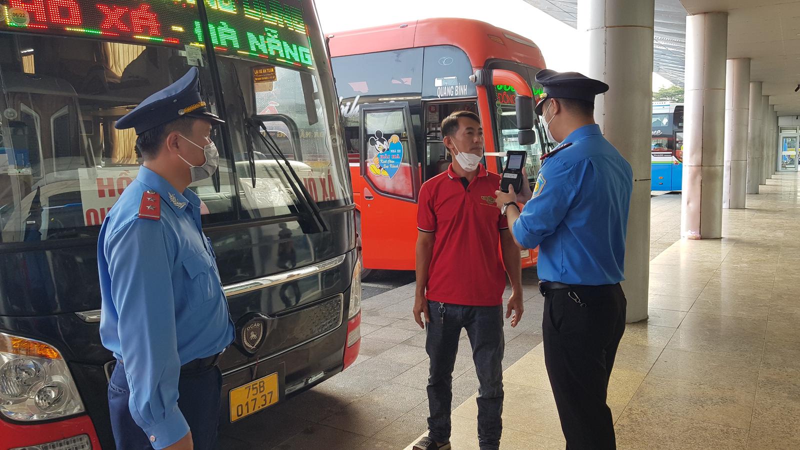Lực lượng Thanh tra Giao thông Đà Nẵng kiểm tra lịch trình xuất bến tại BX Đà Nẵng. Ảnh: N.P