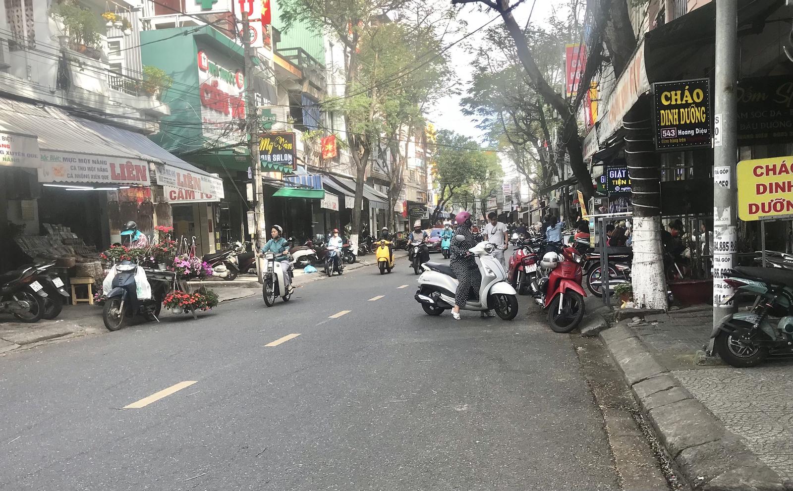 Dọc hai bên vỉa hè đường Hoàng Diệu, khu vực Chợ Hoà Thuận Đông bị lấn chiếm kinh doanh. Ảnh: N.P