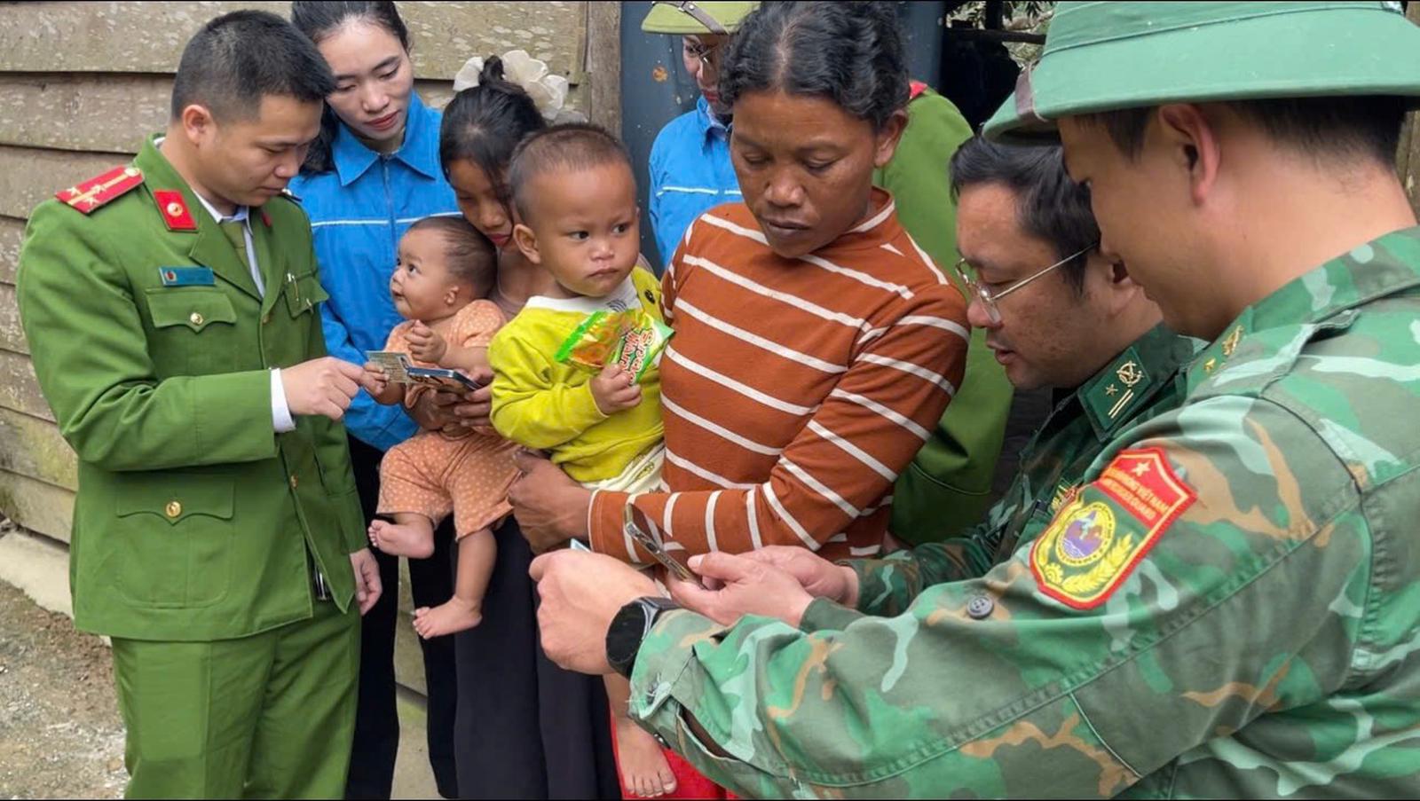 Công an xã Kim Phú hỗ trợ dân bản Mò O Ồ thực hiện các thủ tục hành chính trên môi trường điện tử. Ảnh: CAQT