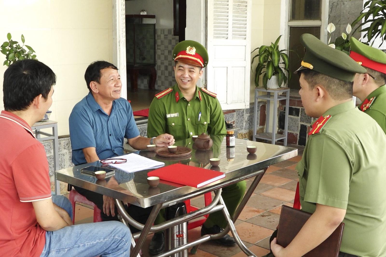Công an cơ sở đến tận nhà hỗ trợ, hướng dẫn Nhân dân góp ý, sửa đổi Hiến pháp 2013 qua ứng dụng VneID. Ảnh: CAQT