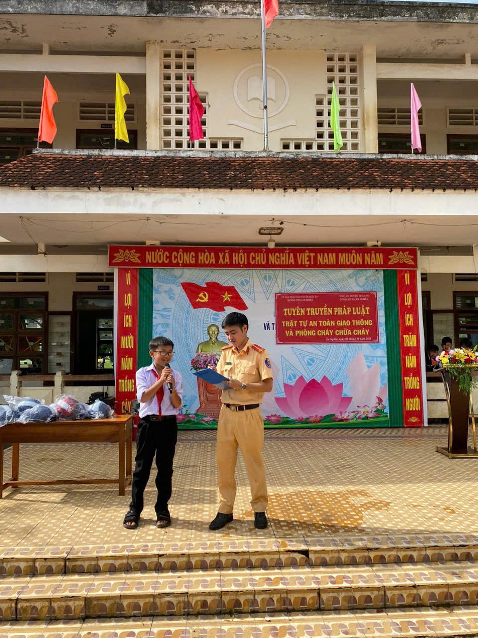 Bên cạnh đó, Công an huyện Hoài Ân đã chỉ đạo Công an xã tham mưu cho UBND xã và các trường học trên địa bàn tiếp tục kiện toàn mô hình cổng trường ATGT, tổ chức tuyên truyền pháp luật trật tự ATGT đối với lứa tuổi học sinh.