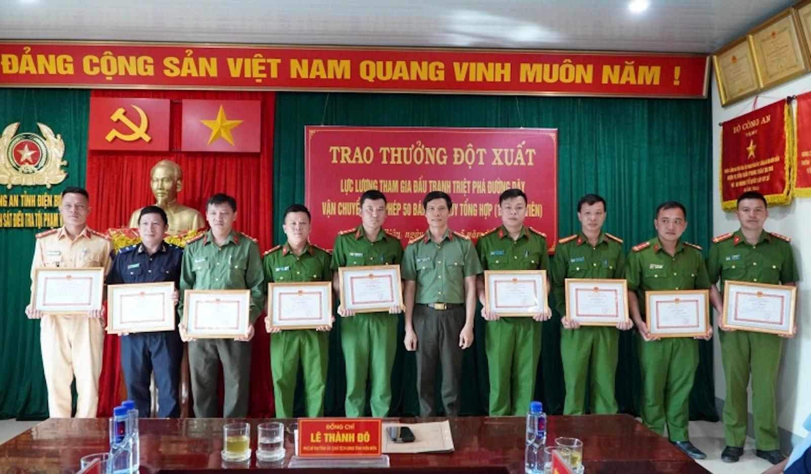 Để kịp thời động viên, khích lệ tinh thần các lực lượng tham gia đấu tranh phòng, chống ma túy, Chủ tịch UBND tỉnh Lê Thành Đô đã trao thưởng đột xuất 20 triệu đồng; Công an tỉnh trao thưởng đột xuất 30 triệu đồng cho lực lượng tham gia đấu tranh triệt phá đường dây ma túy.