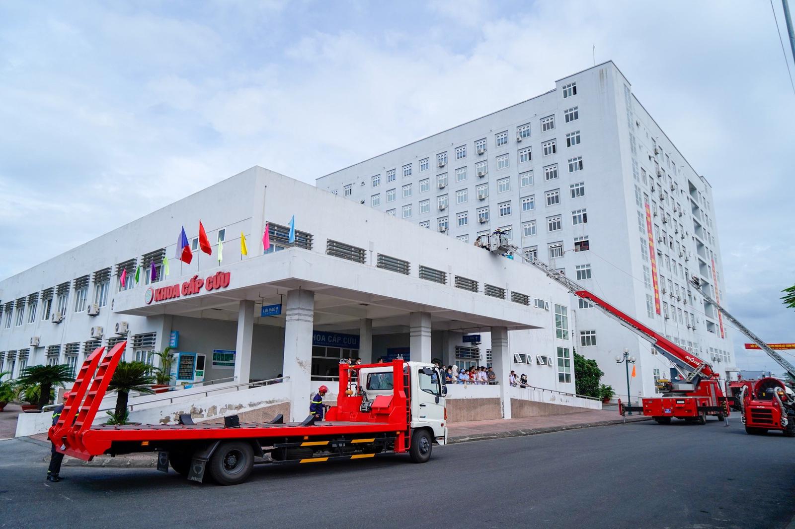 Với tình huống giả định, ngày 20/10/2023 xảy ra sự cố nổ bồn chứa oxy của Bệnh viện Hữu nghị Việt Tiệp - Cơ sở 2, nguyên nhân do sét đánh. Cuộc diễn tập huy động 08 xe chỉ huy; 08 xe CNCH; 02 xe thang; 09 xe chữa cháy; 01 robot chữa cháy; 02 xe chiếu sáng; 07 xe cứu thương; 11 xe chở quân; 09 xe chuyên dùng; 02 xe phá dỡ, 01 xe cẩu và 01 xe xúc.