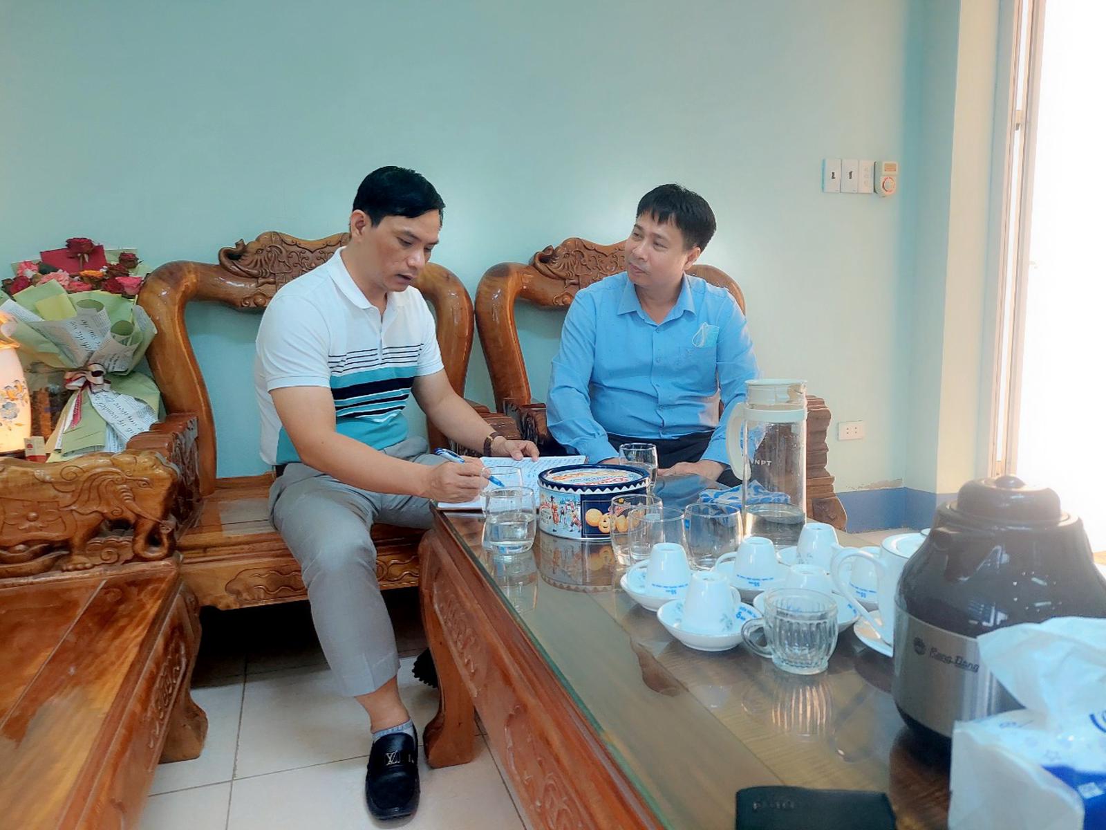 Ông Cầm Bá Học, Chủ tịch UBND xã Xuân Dương (phải ảnh) trao đổi với phóng viên Báo Thanh tra về việc đã tạm dừng san gạt mặt bằng Nhà máy Giày Thường Xuân. Ảnh: VT