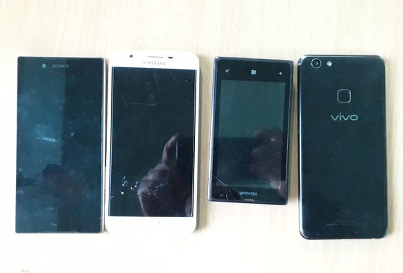 Tang vật 4 chiếc điện thoại do Siu Q trộm cắp. Ảnh: Lương Ý