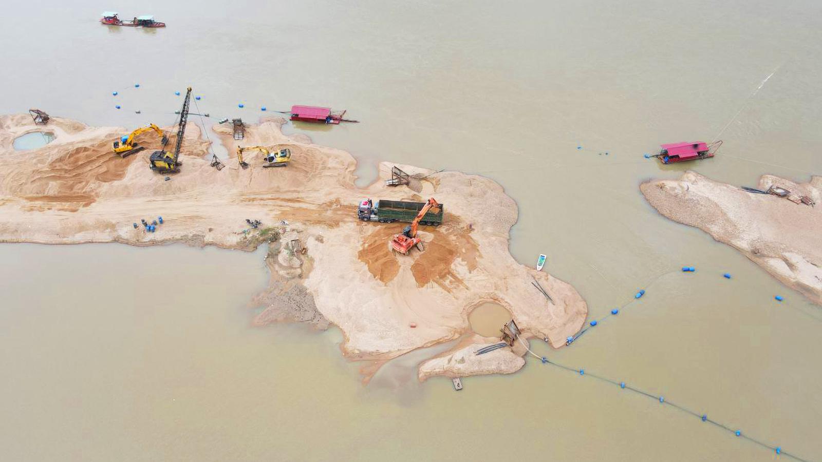 Mỏ cát tại huyện Krông Pa hoạt động chưa đúng quy định vừa bị kiểm tra và yêu cầu tạm ngừng vận chuyển cát để khắc phục các sai phạm. Ảnh: Minh An