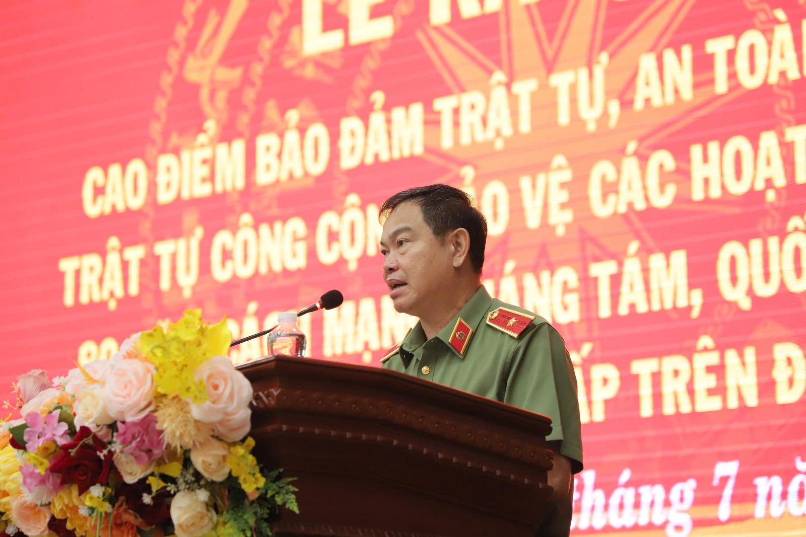 Thiếu tướng Phan Thanh Tám, Giám đốc Công an tỉnh Đắk Lắk phát biểu chỉ đạo tại lễ ra quân. Ảnh: NH