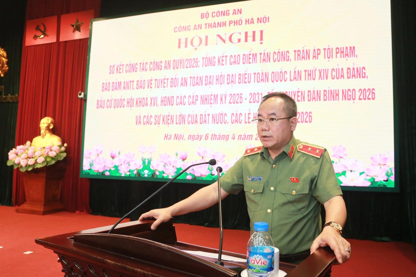 Cùng với việc ghi nhận, biểu dương những thành tích mà cán bộ, chiến sĩ Công an Thủ đô đã đạt được trong quý I/2026, Giám đốc Công an thành phố Hà Nội Nguyễn Thanh Tùng cũng thẳng thắn chỉ ra những tồn tại, hạn chế trên một số mặt công tác.