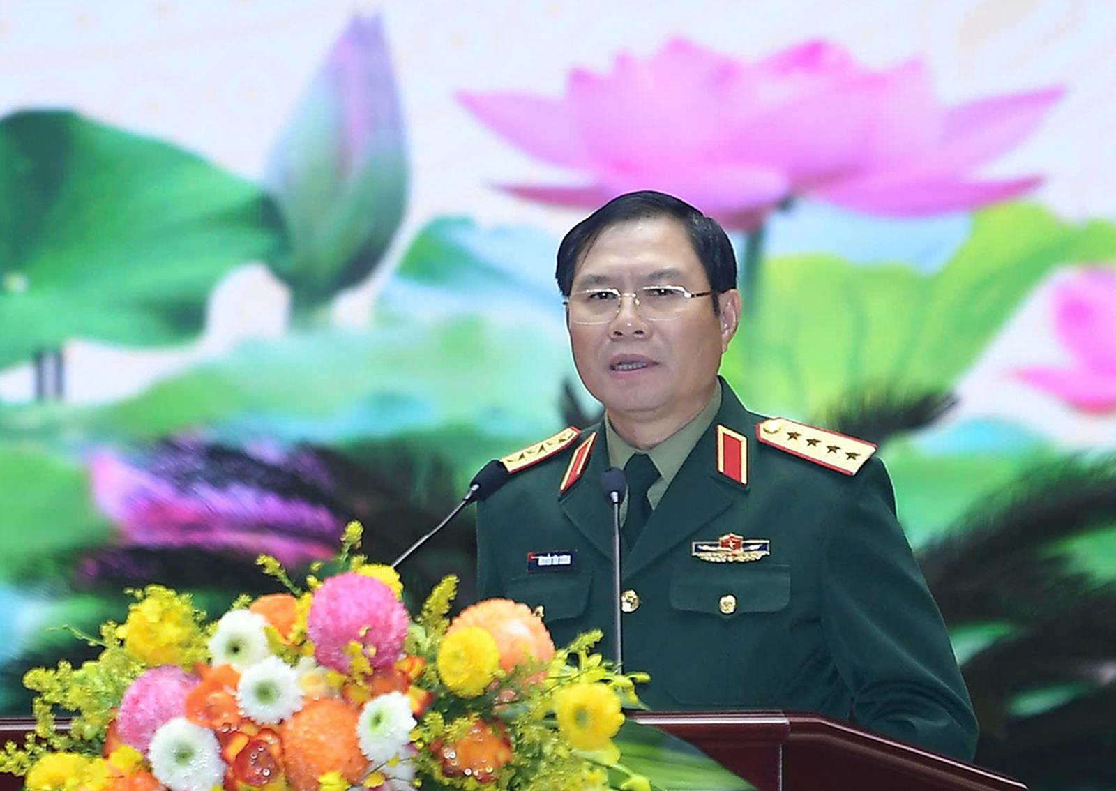 Đại tướng Nguyễn Tân Cương phát biểu kết luận hội nghị. Ảnh: Bộ Quốc phòng