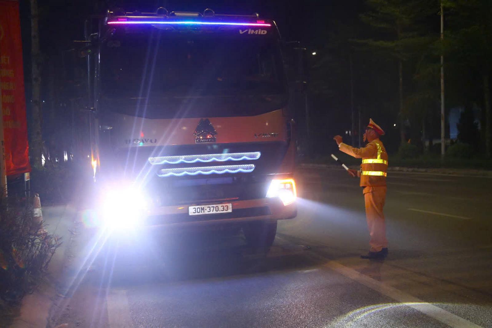 Cảnh sát giao thông Hà Nội kiểm tra xe vận tải hàng hóa. Ảnh: Ngọc Tiến