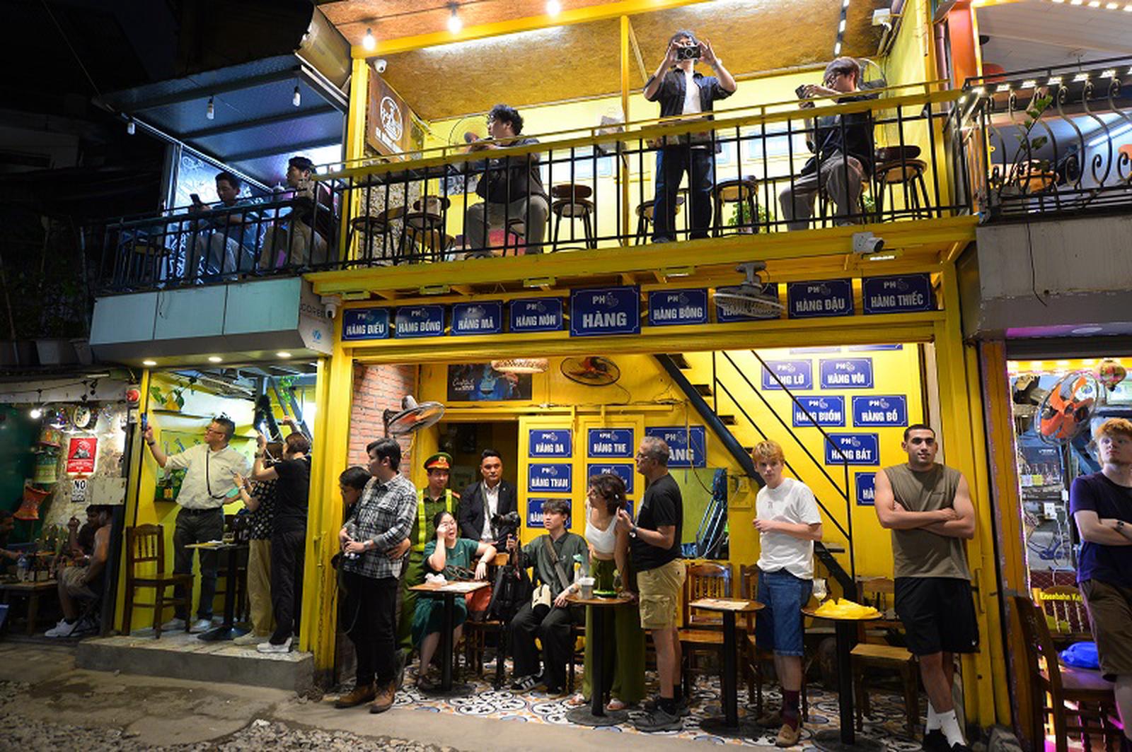 Chỉ ít phút trước khi lực lượng chức năng xuất hiện, khu cà phê đường tàu trên địa bàn phường Hoàn Kiếm (Hà Nội) vẫn đông khách.