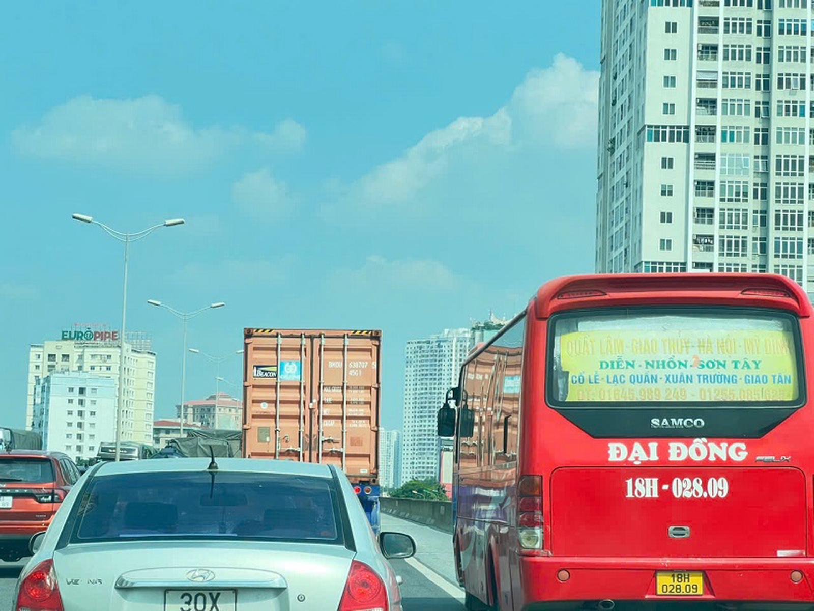 Xe khách, xe hợp đồng vô tư phạm luật trên đường Vành đai 3. Ảnh: PV