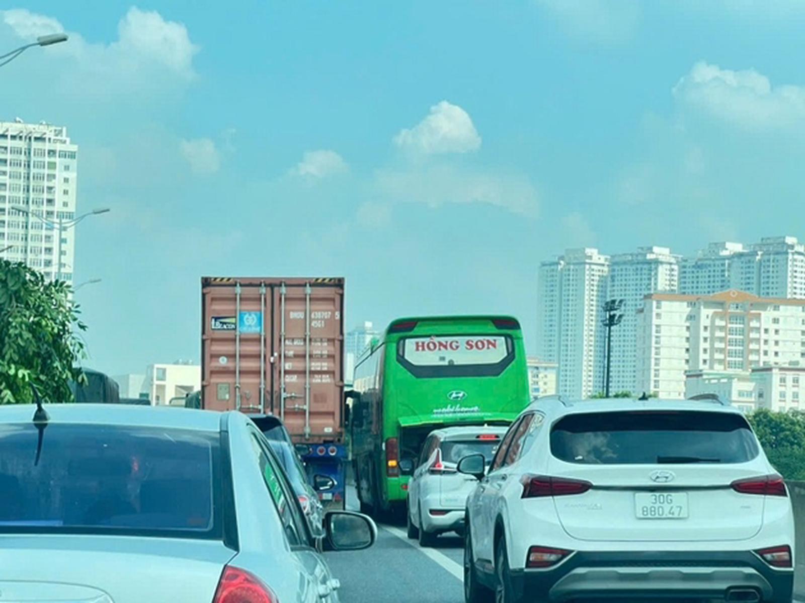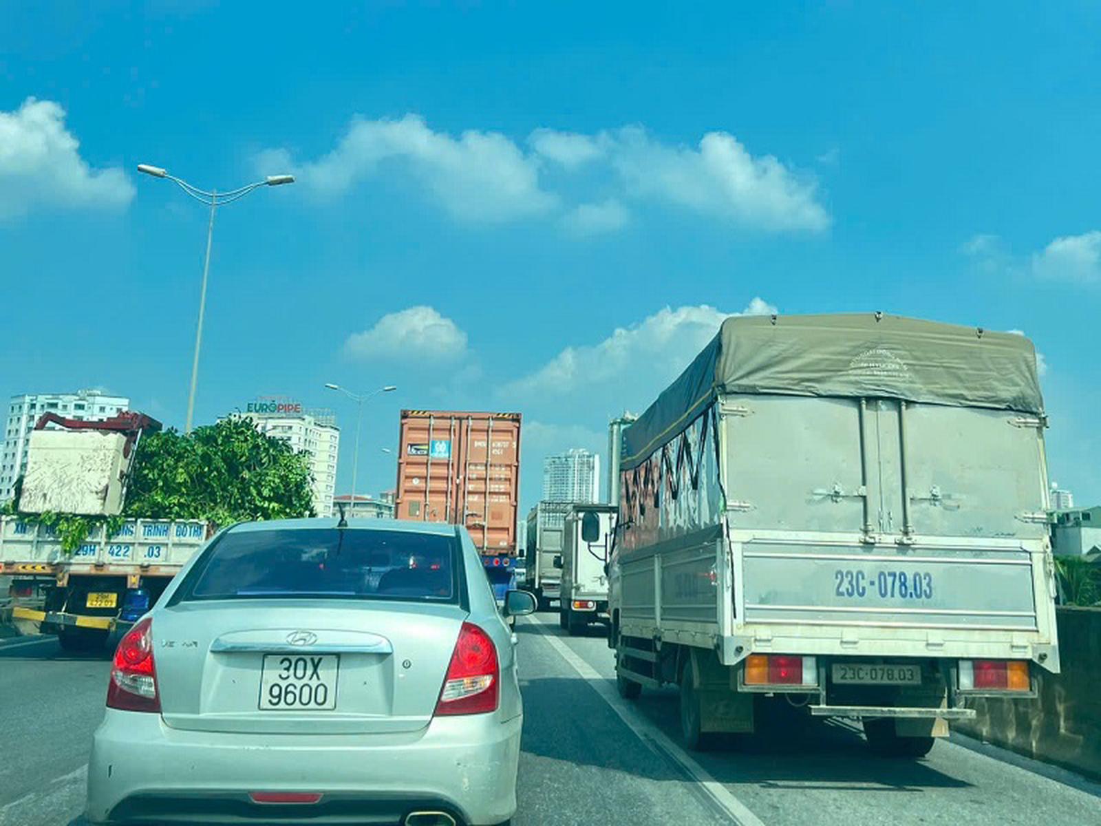 Có mặt tại đường Vành đai 3 đoạn từ Big C (đường Trần Duy Hưng) đến nút rẽ đường Pháp Vân từ 14h00 - 15h00 ngày 31/8, PV chứng kiến hàng loạt xe khách, xe hợp đồng, xe tải, xe ô tô cố ý chạy vào làn dừng khẩn cấp, trong khi hàng loạt xe ô tô khác tuân thủ Luật Giao thông đường bộ thì bị bỏ lại phía sau.