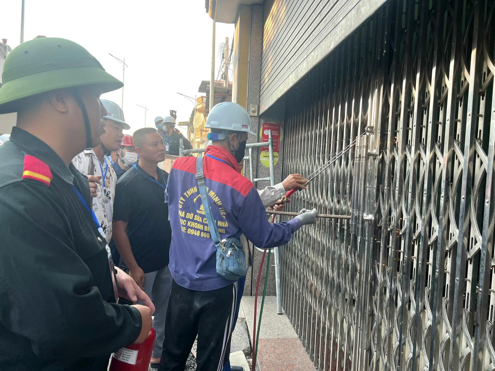 Ban Cưỡng chế huyện An Dương tiến hành cưỡng chế buộc thực hiện biện pháp khắc phục hậu quả đối với hộ ông Vũ Tấn Hiền. Ảnh: KT