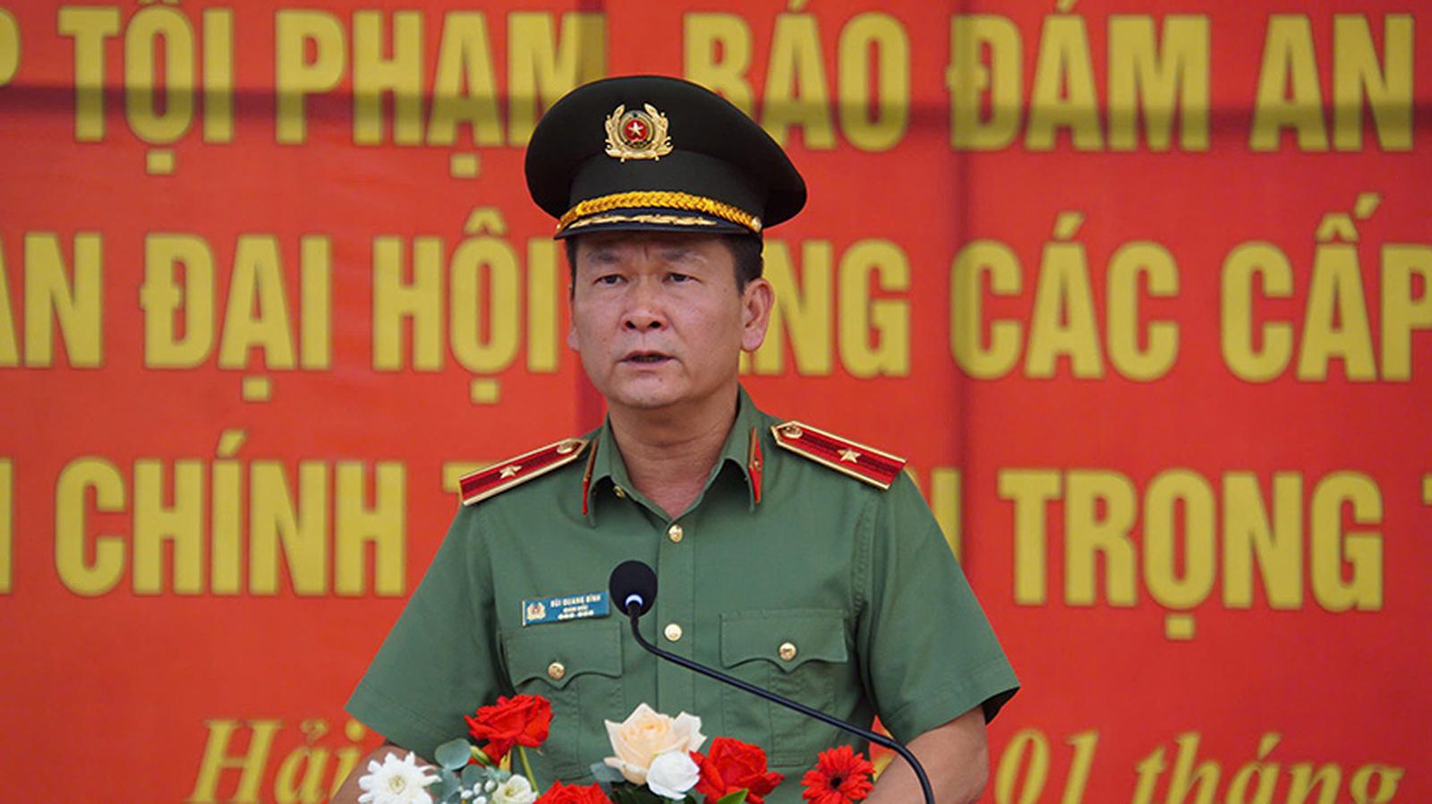 Phát biểu tại lễ ra quân, Thiếu tướng Bùi Quang Bình, Giám đốc Công an thành phố Hải Phòng nhấn mạnh: "Bảo vệ an ninh, an toàn Đại hội Đảng là nhiệm vụ trọng tâm, cấp bách - là danh dự của lực lượng Công an Nhân dân".