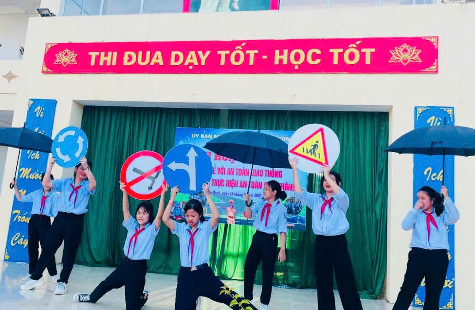 Trường học các cấp đã tổ chức nhiều chương trình tuyên truyền về Luật Giao thông. Ảnh: CTV