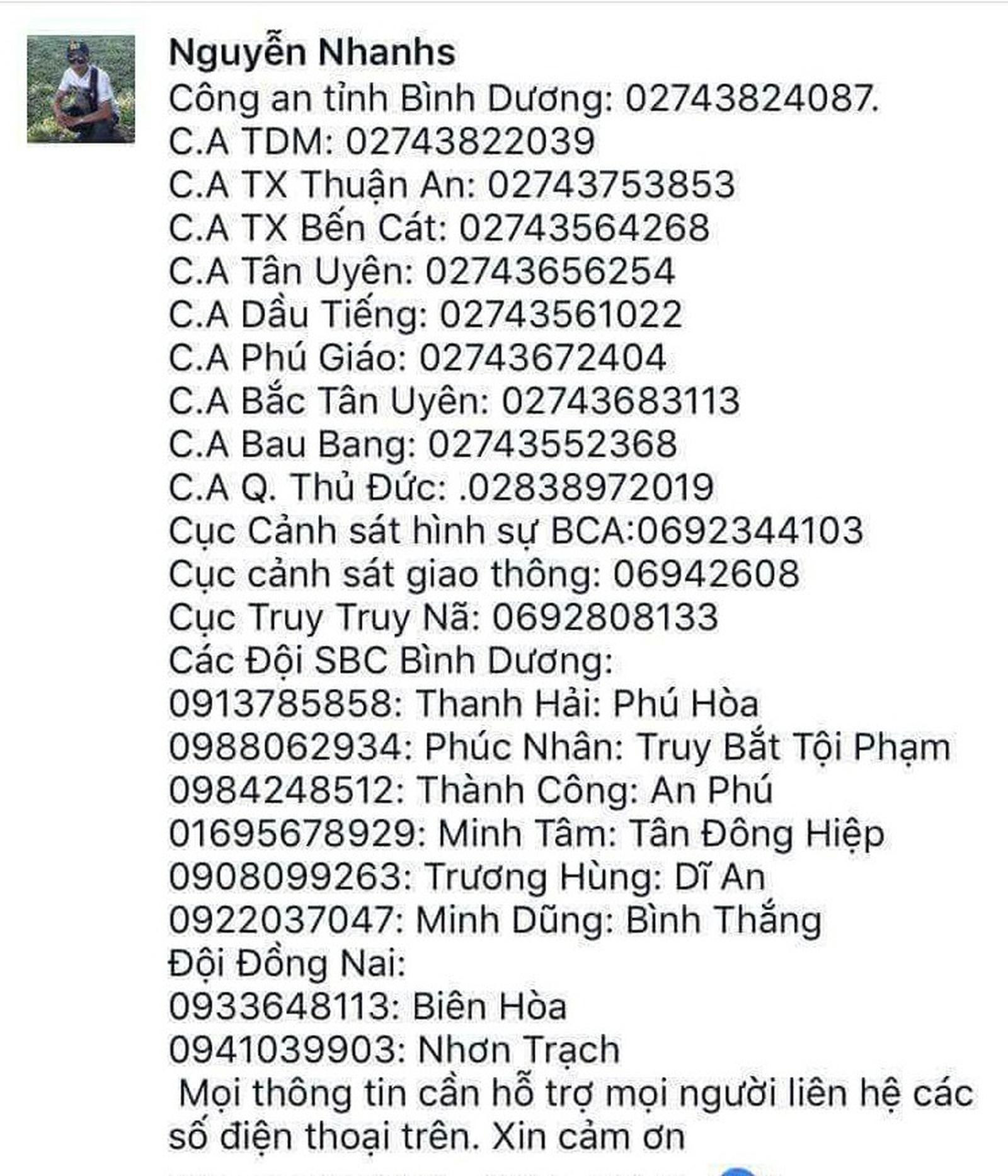 Số điện thoại các cơ quan và các Đội Phòng chống tội phạm của phường tại tỉnh Bình Dương thường xuyên được công khai để mọi người khi mất trộm hay bị cướp có thể liên lạc