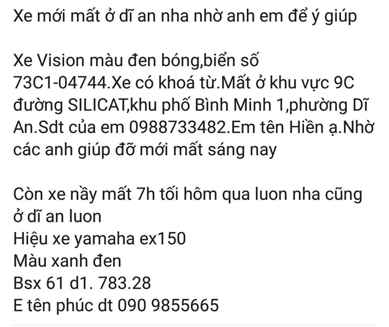 Những thông tin về vụ mất trộm, số điện thoại, biển số xe... để Đội có cơ sở truy tìm