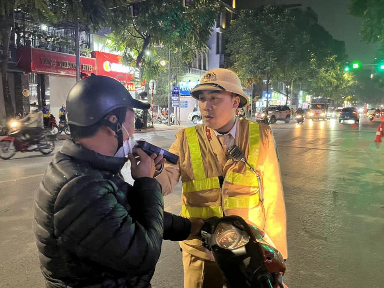 Công an TP Hà Nội huy động tối đa lực lượng xử lý vi phạm nồng độ cồn trong kỳ nghỉ Tết Dương lịch 2024. Ảnh: Công an Hà Nội