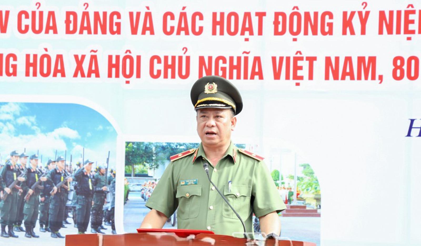 Thiếu tướng Trần Xuân Ánh, Giám đốc Công an tỉnh Hưng Yên phát lệnh lực lượng công an toàn tỉnh ra quân thực hiện đợt cao điểm. Ảnh: Báo Hưng Yên