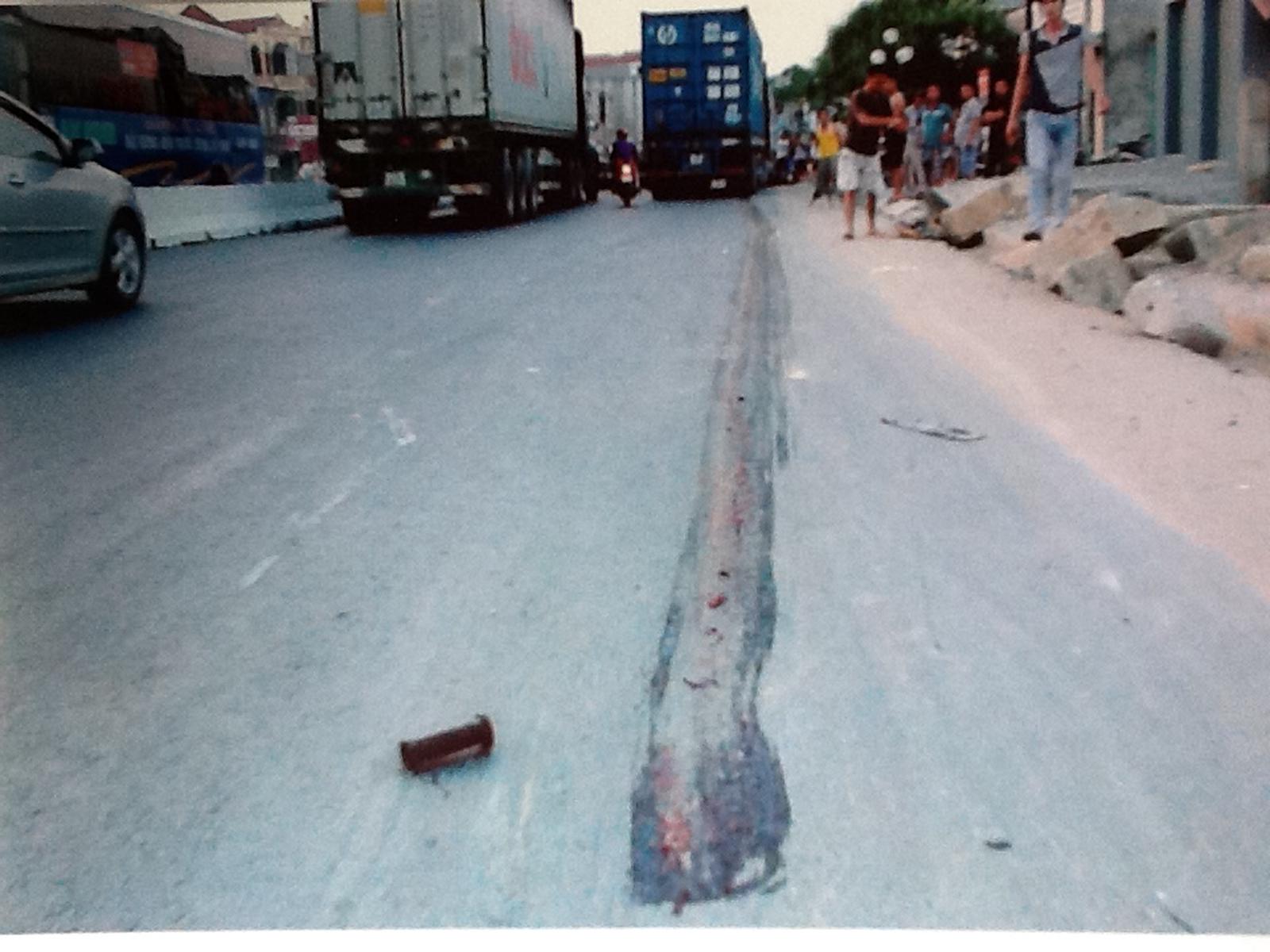 Hiện trường vụ tại nạn xảy ra vào khoảng 17 giờ 45 phút ngày 13/5/2013 tại km 303 + 30 quốc lộ 1A thuộc địa bàn thị trấn Hà Trung. Ảnh: Do nạn nhân cung cấp