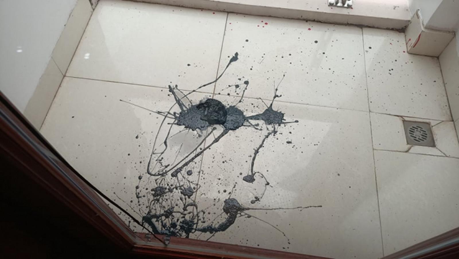 Chất bẩn liên tiếp bị kẻ lạ mặt ném vào nhà của nhà báo Thanh Tuấn. Ảnh: VT