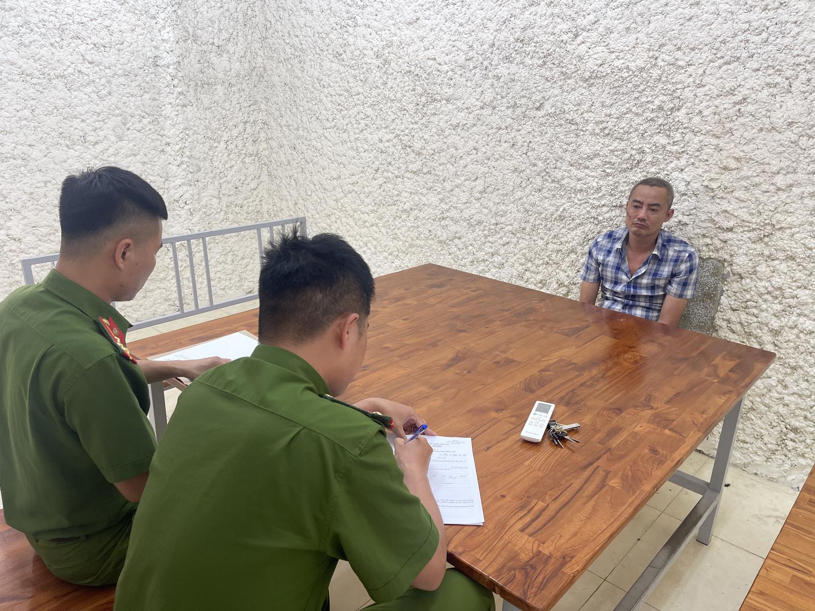 Đối tượng Nguyễn Mạnh Hà tại cơ quan công an. Ảnh: Cơ quan công an cung cấp