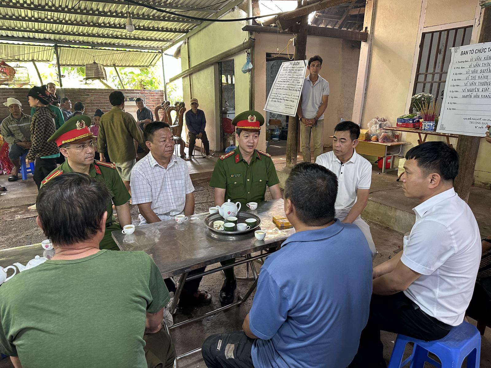 Ban Giám đốc Công an tỉnh, đại diện Ban An toàn giao thông tỉnh Sơn La và đại diện các ban, ngành huyện Yên Châu tổ chức thăm hỏi, động viên gia đình, thân nhân người bị nạn. Ảnh: Cơ quan công an cung cấp
