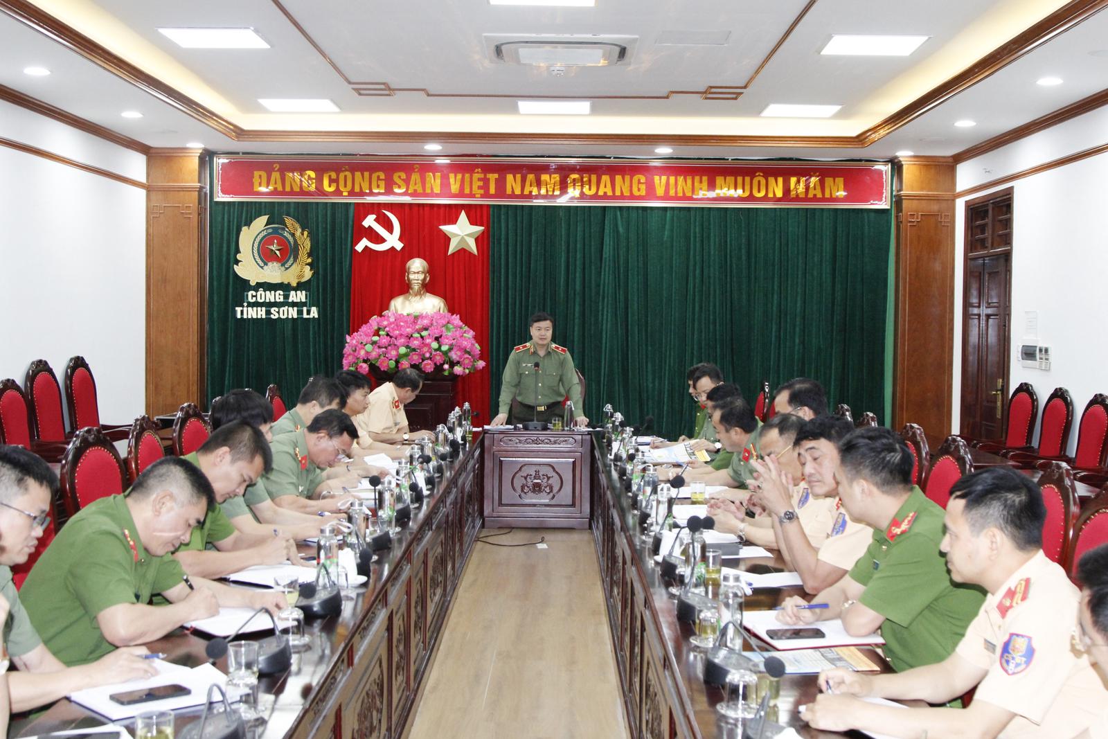 Giám đốc Công an tỉnh Sơn La phát biểu chỉ đạo tại buổi hội ý nghiệp vụ với các lực lượng chức năng. Ảnh: Cơ quan công an cung cấp