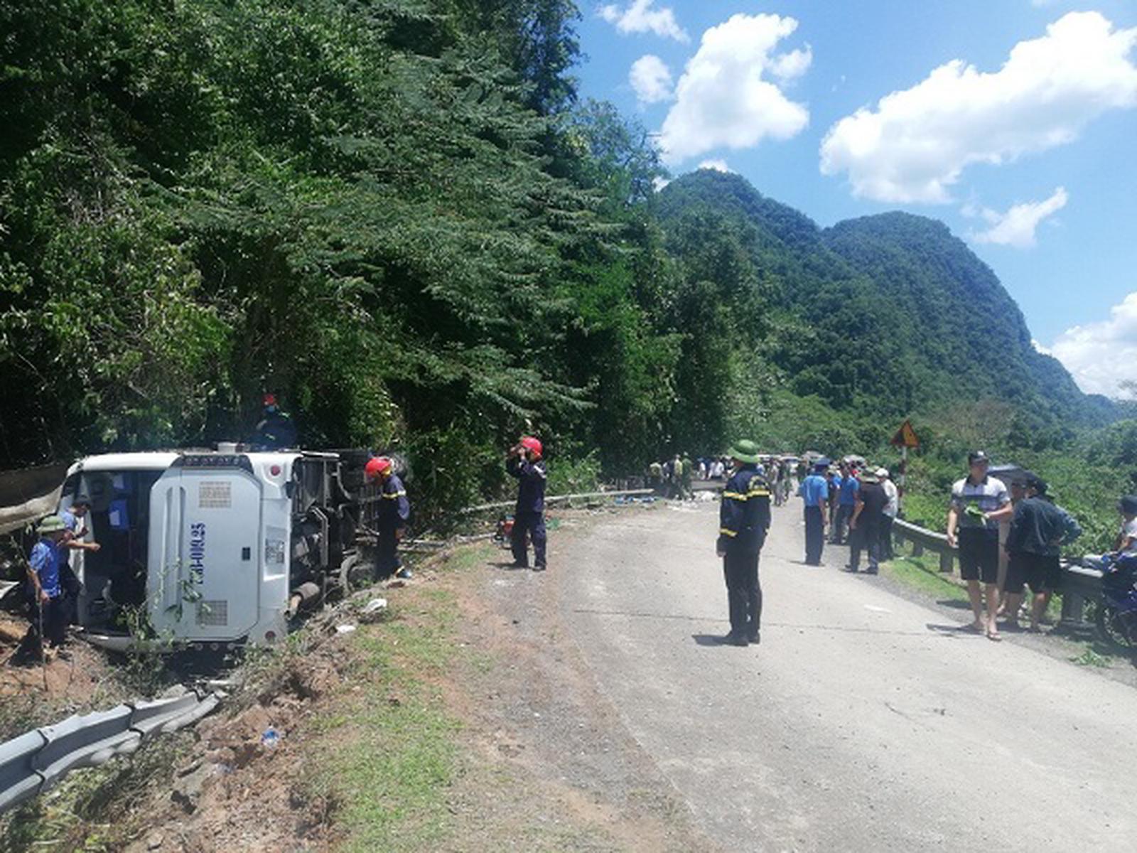 Tính đến 13h30 chiều nay, Sở Y tế tỉnh Quảng Bình đã điều động 6 xe cấp cứu lên hiện trường vụ lật xe để cứu thương, đưa người bị thương đến các bệnh viện cấp cứu.