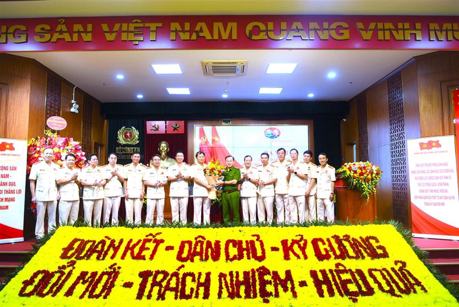 Thứ trưởng Nguyễn Văn Long tặng hoa chúc mừng Ban Chấp hành Đảng bộ Cục nhiệm kỳ 2025 - 2030. Ảnh: BCA