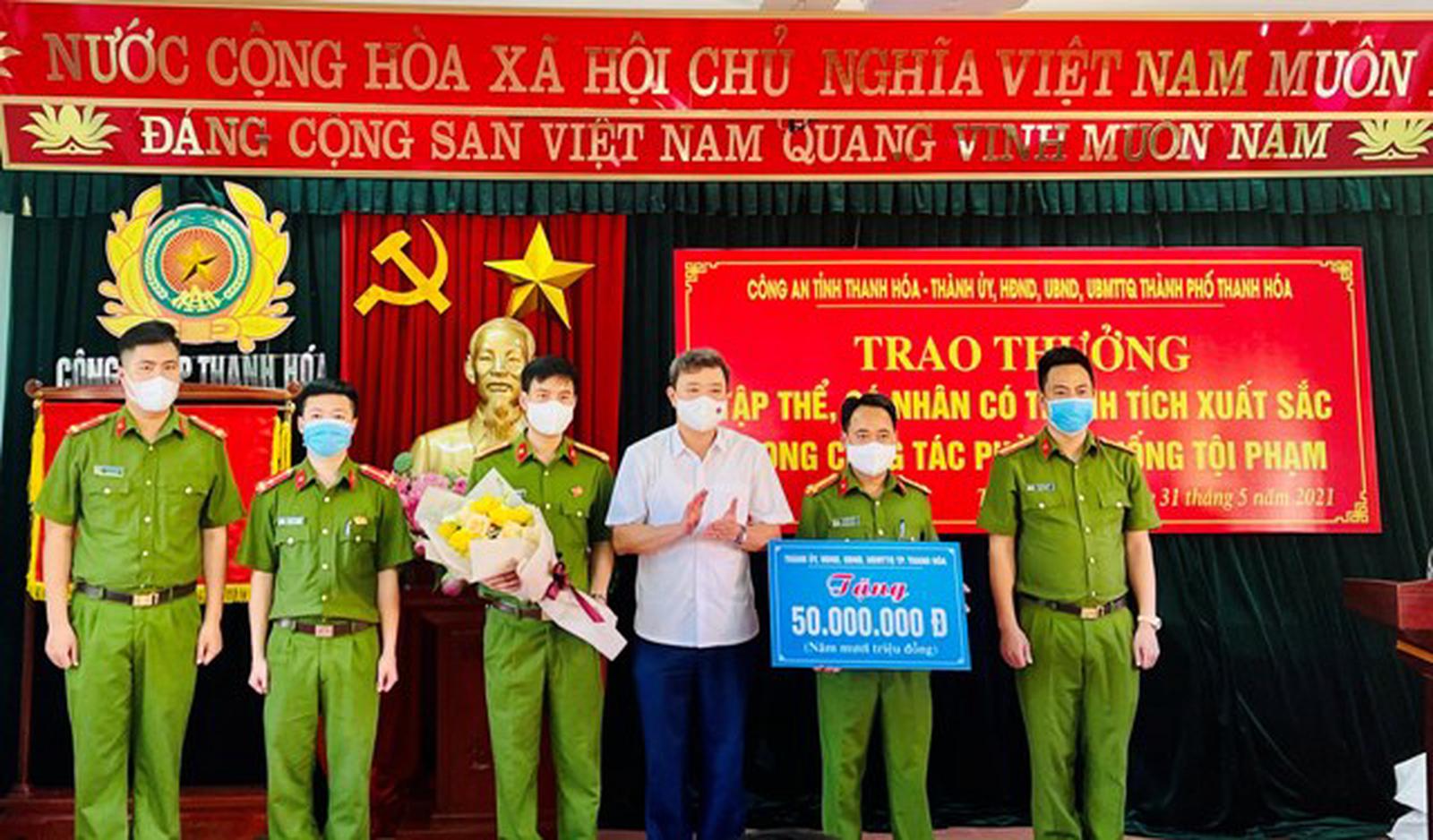 Ghi nhận thành tích xuất sắc trên của Công an TP Thanh Hoá và VKSND TP Thanh Hoá, Bộ trưởng Bộ Công an đã có quyết định tặng bằng khen cho 1 tập thể, 5 cá nhân; Giám đốc Công an tỉnh có quyết định tặng giấy khen cho 2 tập thể, 15 cá nhân và Bí thư Thành ủy TP Thanh Hóa đã trao thưởng tổng số tiền 140 triệu đồng.
