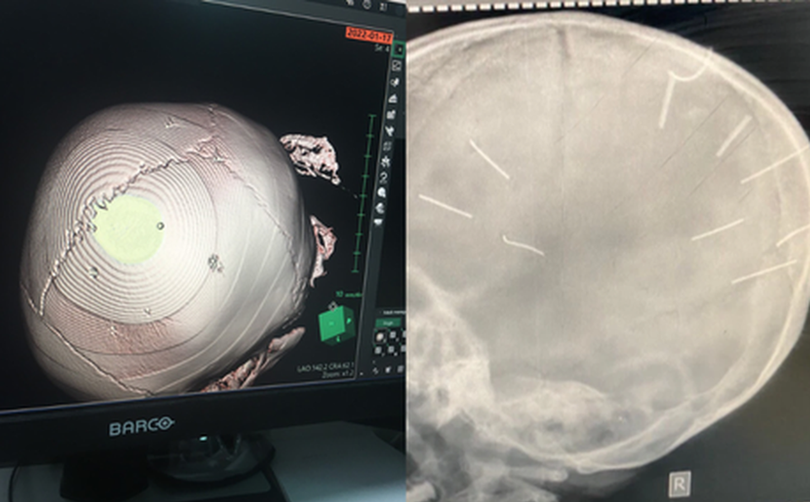 Theo trình bày của người mẹ, từ chiều cùng ngày đã thấy bé A. có biểu hiện bất thường, gọi liên tục nhưng bé không tỉnh. Bệnh viện Đa khoa huyện Thạch Thất tiến hành chiếu chụp, chẩn đoán trên phim có hình ảnh cản quang trên hộp sọ bệnh nhi.