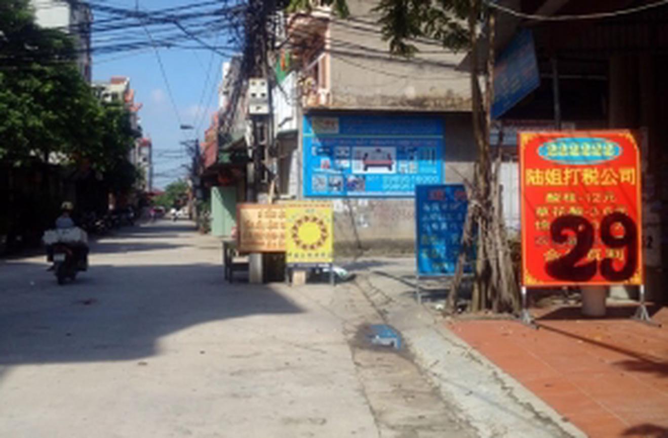 Dọc con đường từ Đồng Kỵ đến xã Hương Mạc, có thể dễ dàng bắt gặp những biển hiểu dày đặc tiếng Trung Quốc