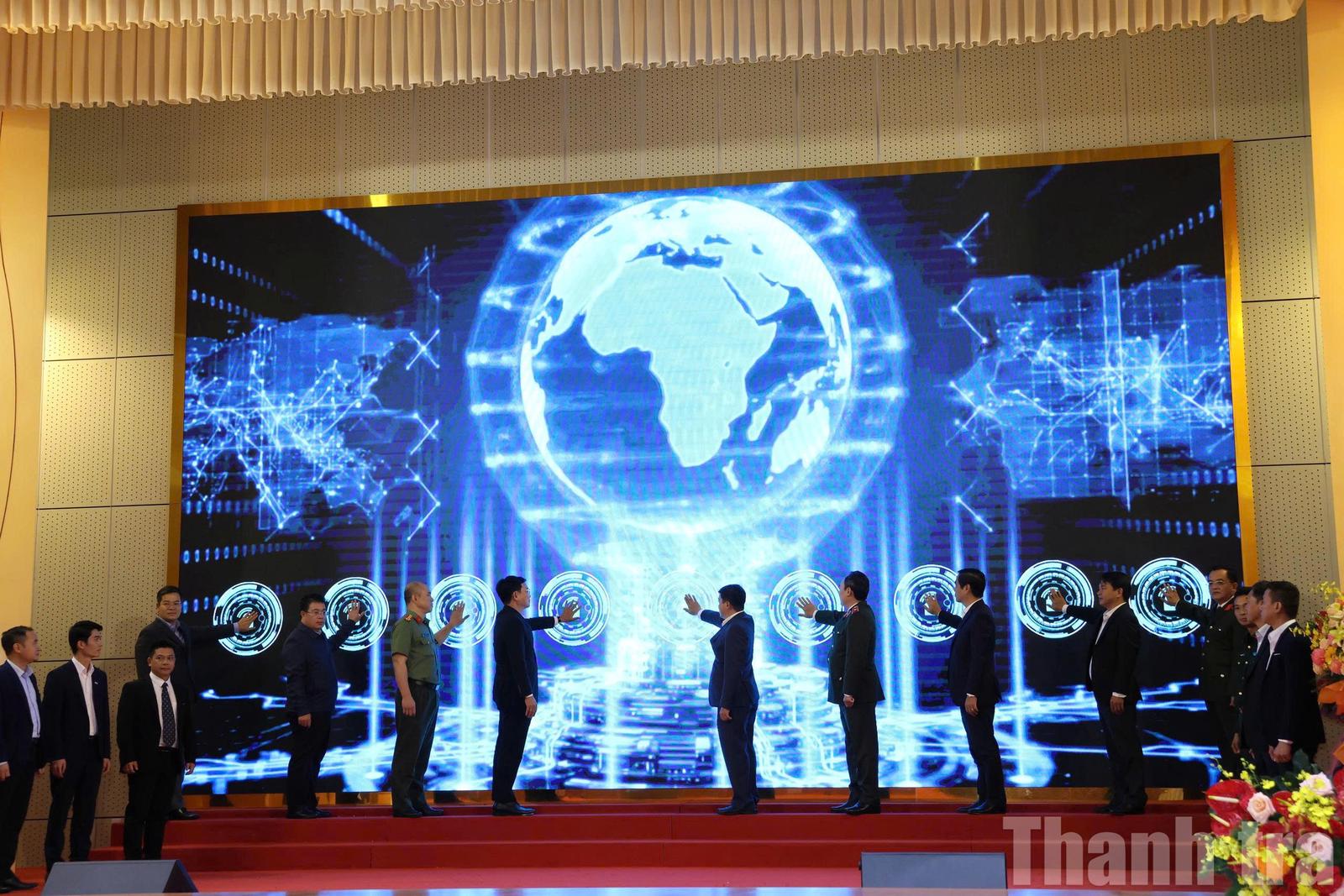 Lãnh đạo Cục An ninh mạng và phòng, chống tội phạm sử dụng công nghệ cao (Bộ Công an) và lãnh đạo tỉnh Lâm Đồng thực hiện nghi thức ra mắt Trung tâm SOC. Ảnh: Vũ Linh