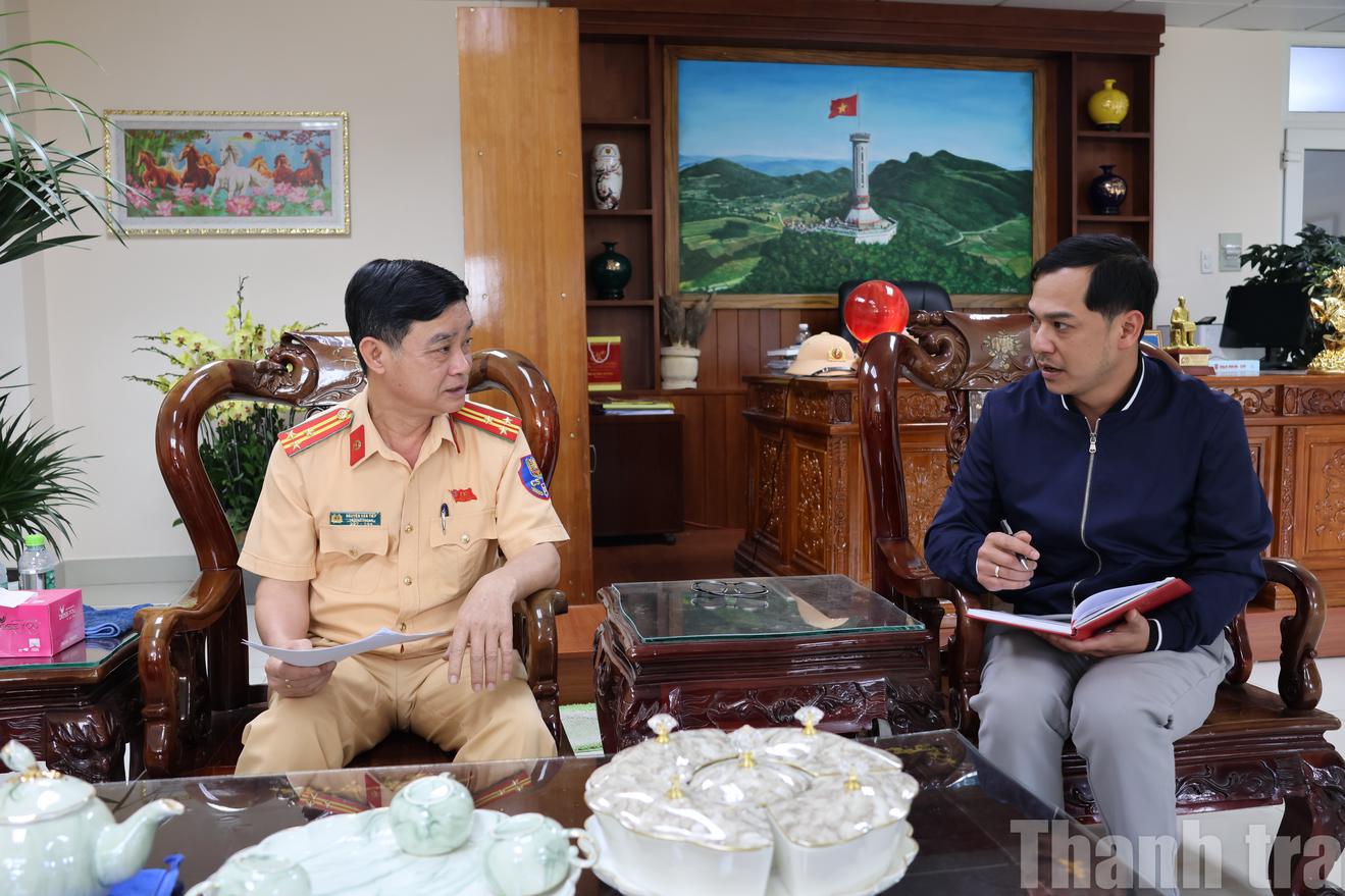 Thượng tá Nguyễn Văn Tiếp, Trưởng Phòng Cảnh sát Giao thông, Công an tỉnh Lâm Đồng trao đổi với phóng viên Báo Thanh tra. Ảnh: Vũ Linh