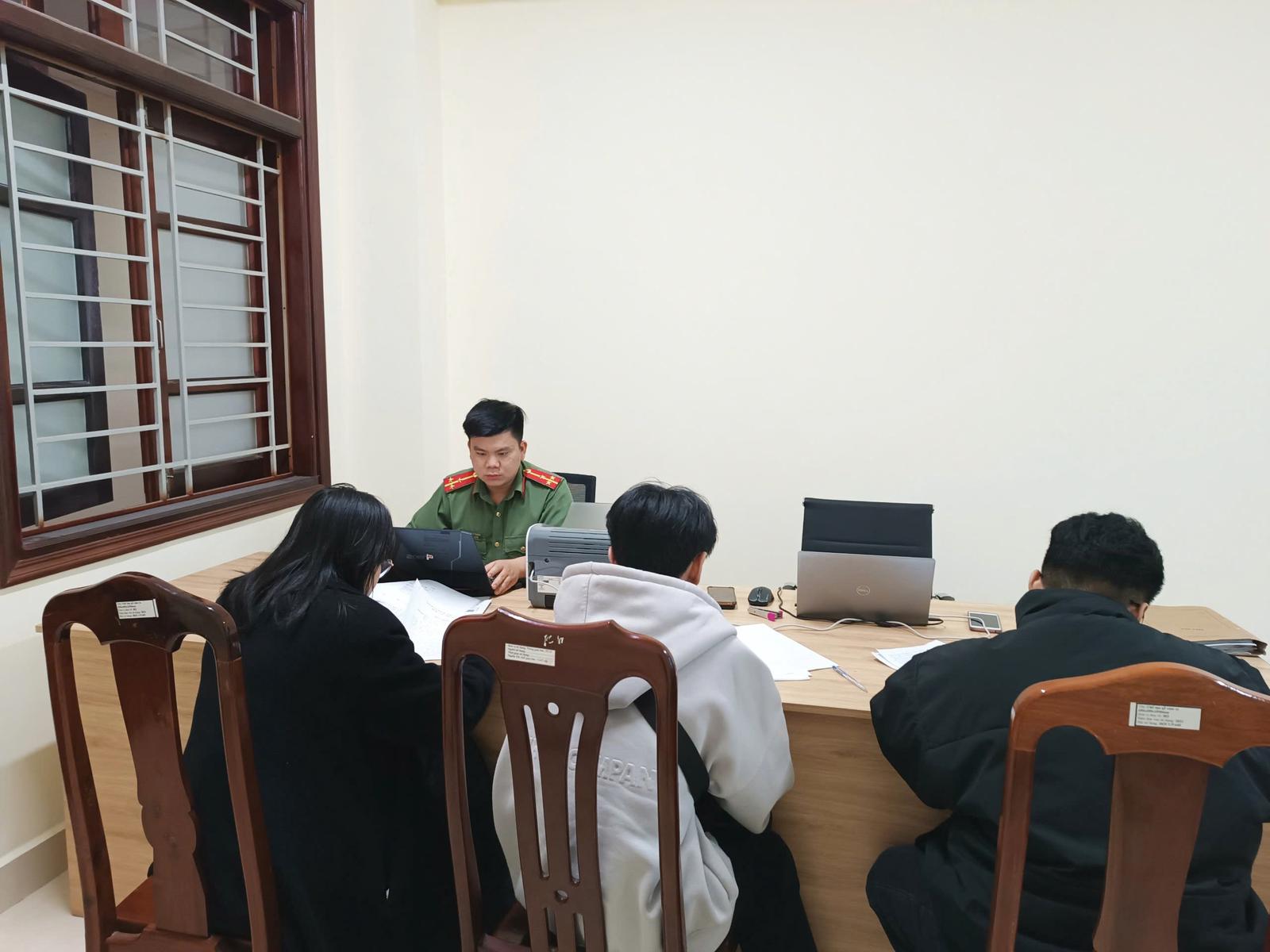 Lực lượng chức năng làm việc với nhóm quản trị trang fanpage Facebook “YDL Confessions 3.0”. Ảnh: Công an cung cấp