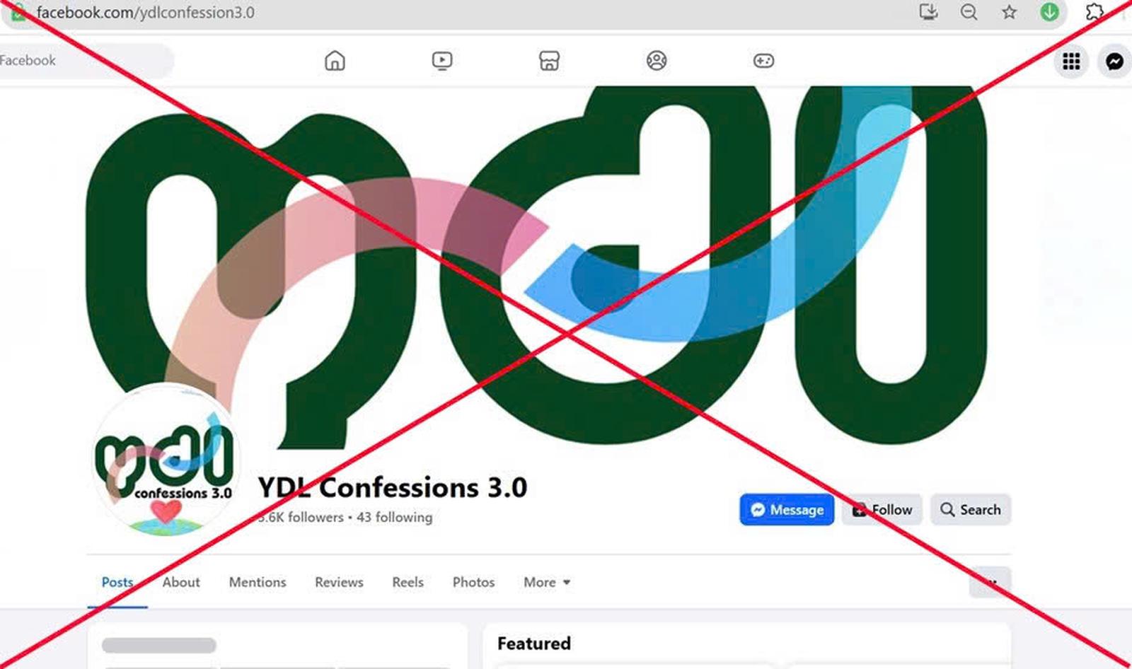 Fanpage Facebook “YDL Confessions 3.0” của các trường hợp trên dùng để đăng tải thông tin sai sự thật. Ảnh: Công an cung cấp