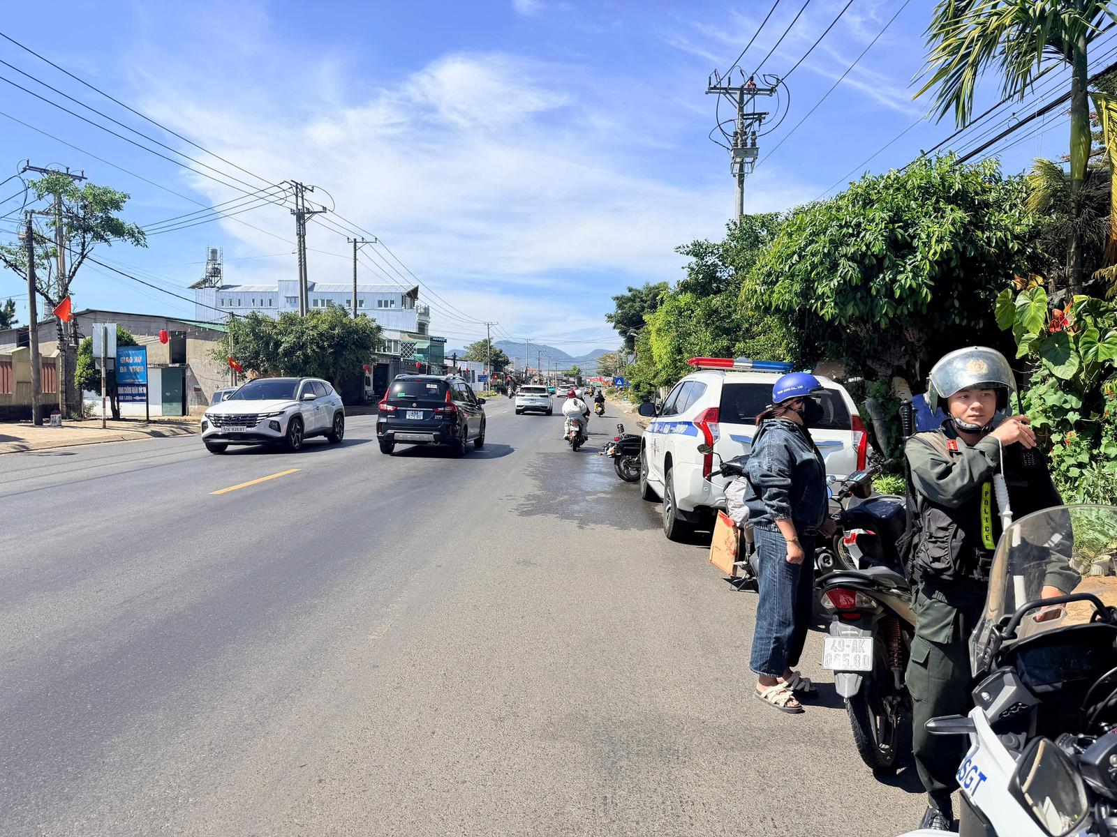 Trạm Cảnh sát giao thông Mađaguôi, thuộc Phòng Cảnh sát giao thông, Công an tỉnh Lâm Đồng bố trí lực lượng tuần tra, kiểm soát đảm bảo an toàn giao thông trên tuyến quốc lộ 20. Ảnh: CTV