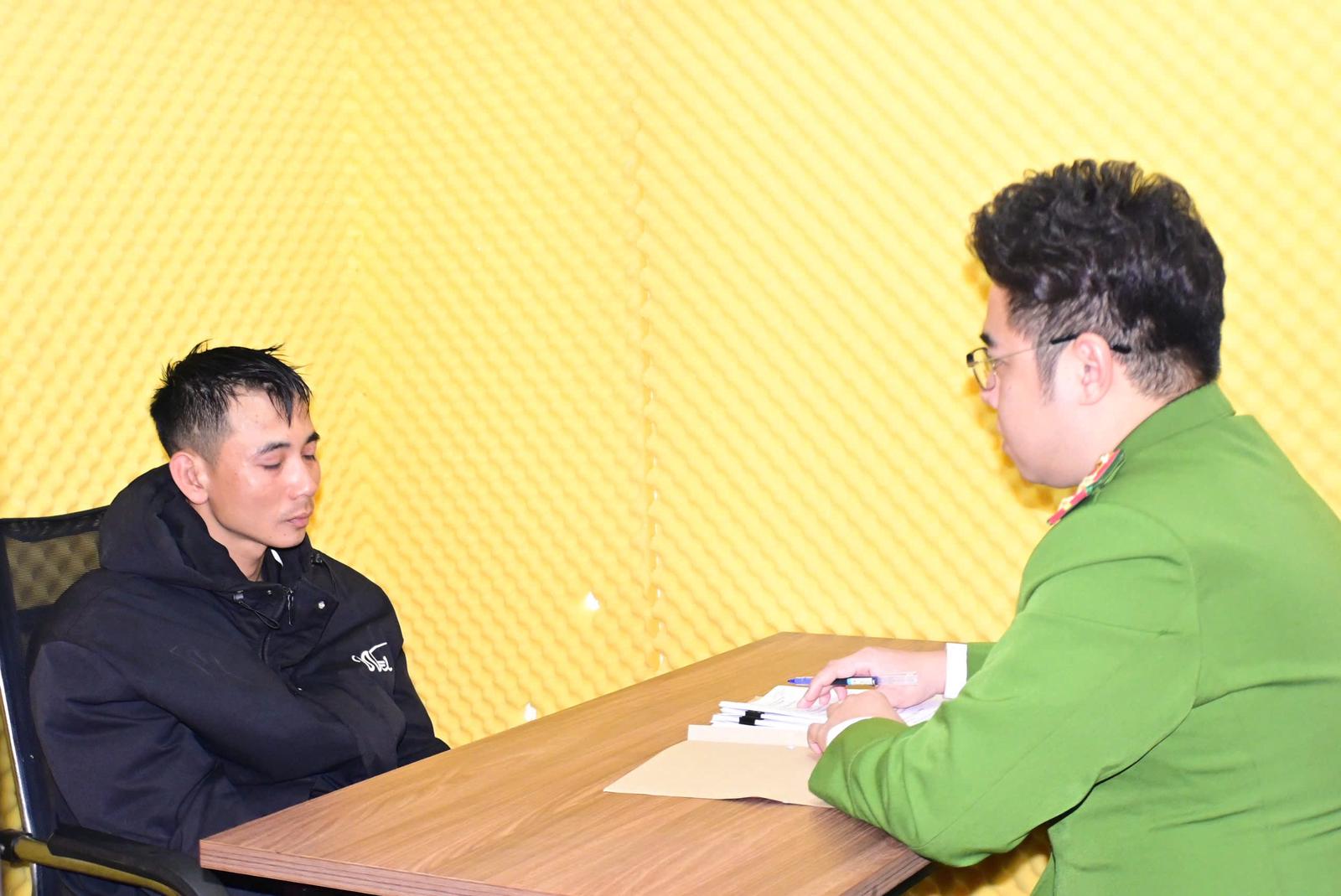 Công an lấy lời khai của đối tượng Phạm Văn Long. Ảnh: CA