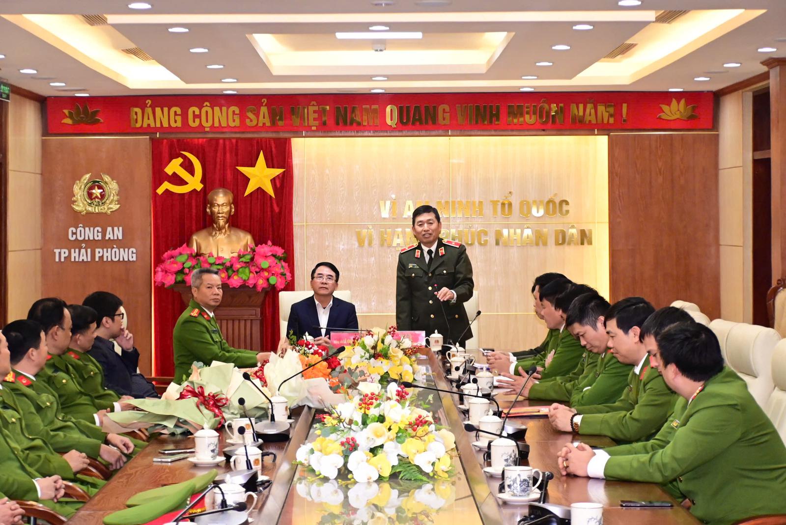 Phó Chủ tịch UBND thành phố Lê Khắc Nam ghi nhận, biểu dương các đơn vị Công an thành phố đã tham gia thực hiện chuyên án. Ảnh: CA