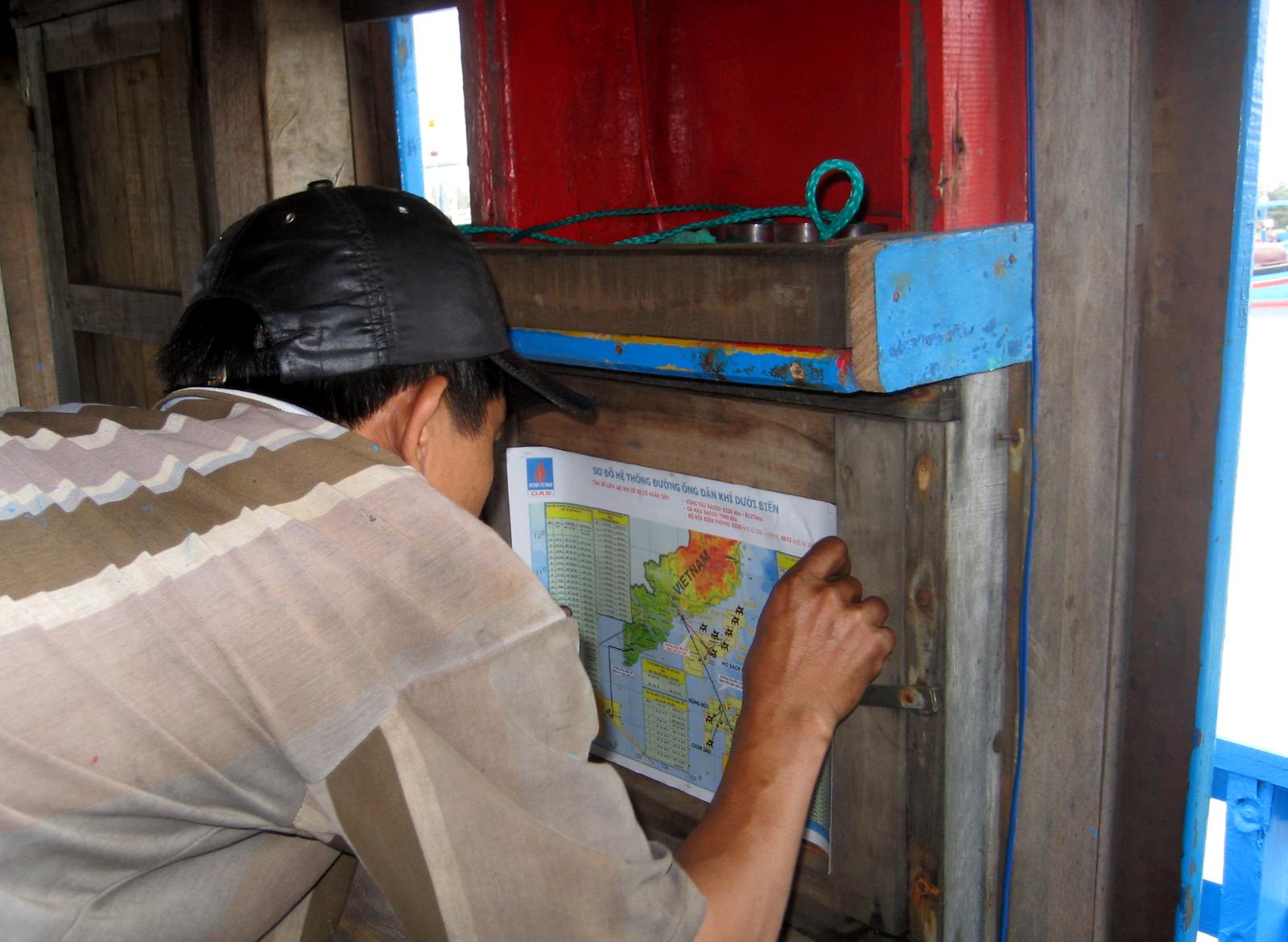 Hướng dẫn ngư dân dán và theo dõi địa hình trên bản đồ hệ thống dầu khí trên biển