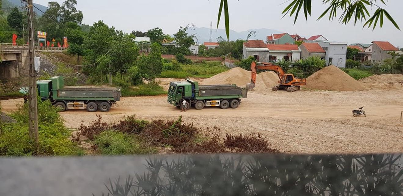 Xe tải khổ lớn tấp nập vào ra một bãi cát trên địa bàn huyện Đại Lộc, Quảng Nam. Ảnh: T.P