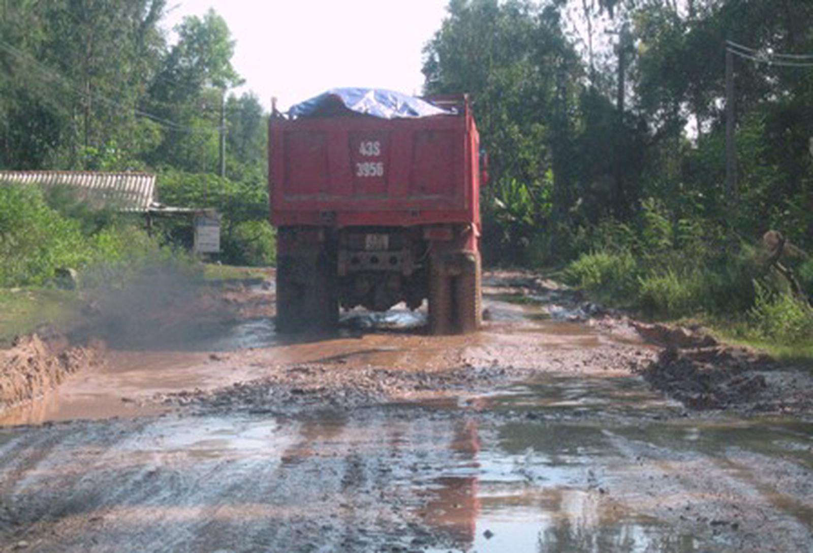 Xe chở đất quá tải phá nát đường giao thông liên thôn Bình Đông. Ảnh: Ngọc Phó