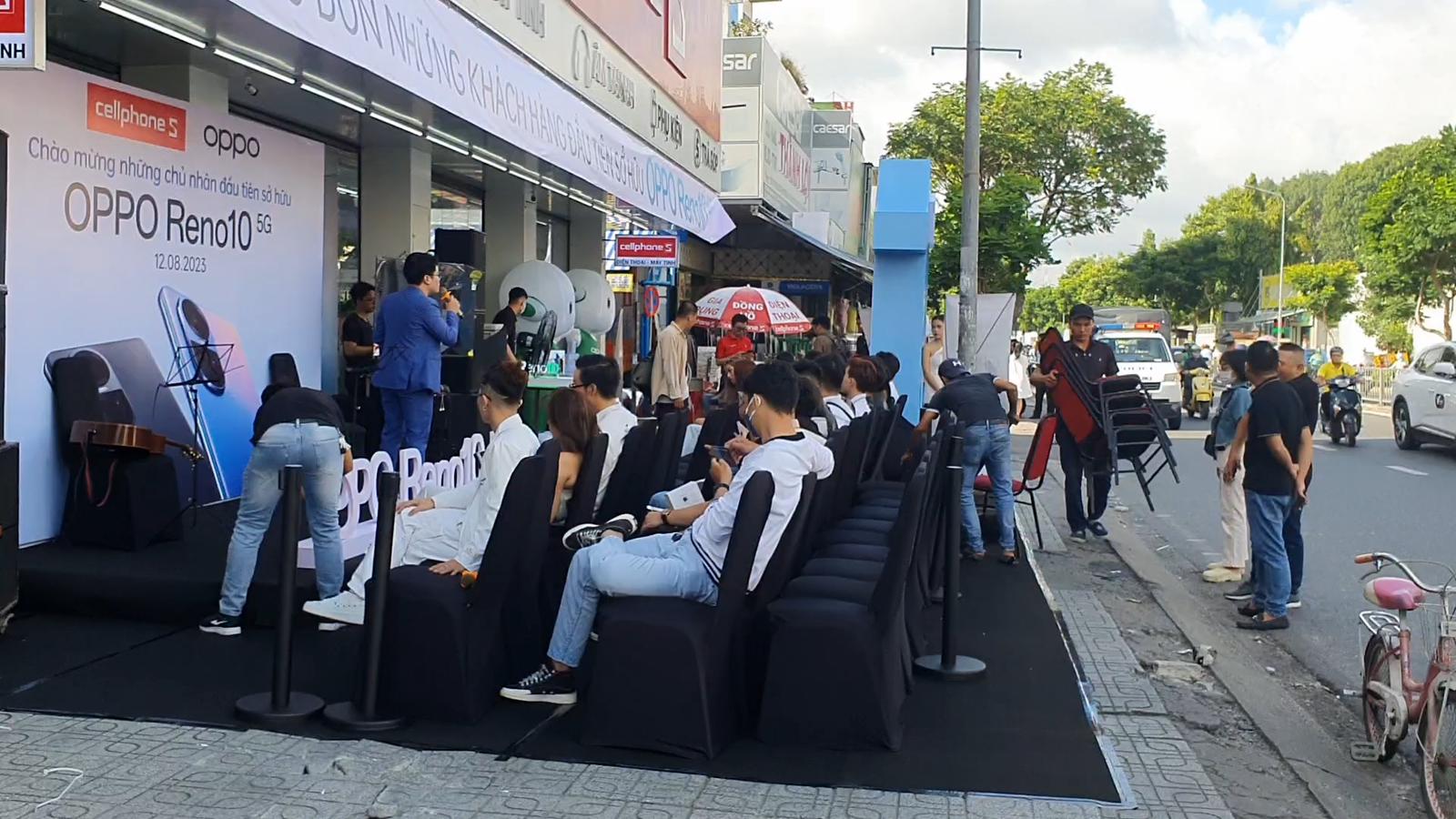 Sáng ngày 12/8/2023, tại cửa hàng CellphoneS (địa chỉ 272 đường Nguyễn Oanh, phường 17, quận Gò Vấp, TP HCM) đã diễn ra sự kiện quảng cáo cho sản phẩm OPPO Reno 10 vừa ra mắt.