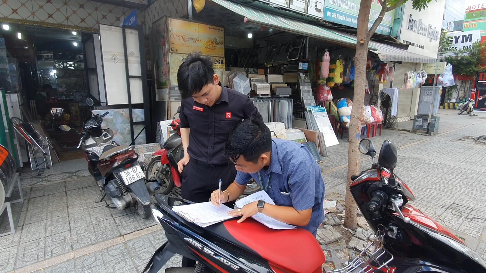 Lực lượng chức năng của UBND phường 17 đã phối hợp cùng Đội Trật tự đô thị quận Gò Vấp tiến hành kiểm tra hành chính đơn vị này. Ảnh: Chu Tuấn